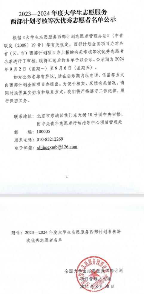 2023-2024年度大学生志愿服务西部计划优秀志愿者表彰文件