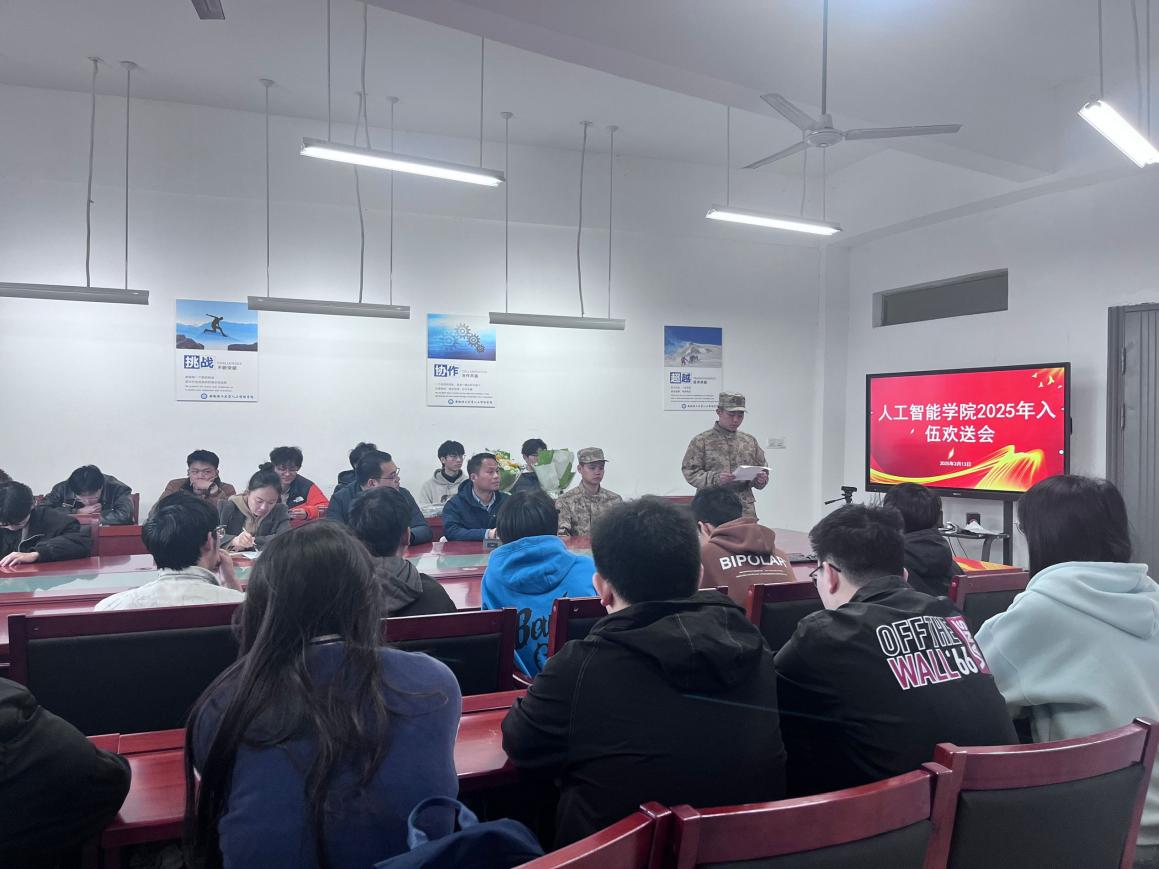 3月13日下午,人工智能学院在学院A103会议室召开2025届应征入伍毕业生欢送会。学院学生工作负责人、相关辅导员、2022级学生代表参加欢送会。