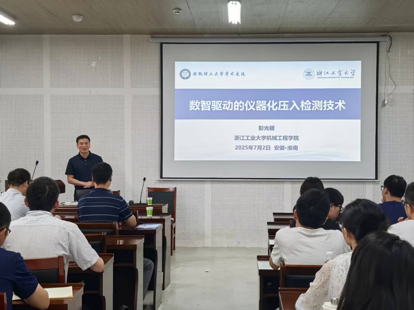 彭光健教授作了题为《数智驱动的仪器化压入检测技术》的学术报告,报告介绍了仪器化压入技术面临缺乏在位检测仪器、多种参数不能识别、动态试验测不准等难题,详细阐述了针对这些难题在仪器研制、压入模型与分析方法、可靠性测试与标准化等方面取得的研究进展,并重点介绍基于机器学习的残余应力压入检测方法及其优势。
