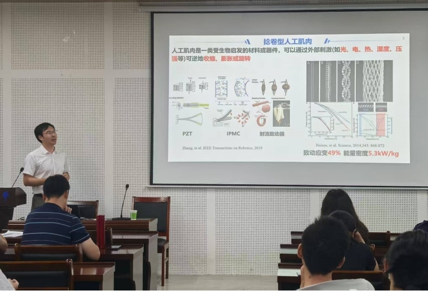 刘大彪教授作了题为《面向人形机器人的驱动与传感:从人工肌肉到触觉感知》的学术报告,报告聚焦人形机器人核心使能技术—柔性驱动与智能感知,探讨了从新型人工肌肉驱动到仿生触觉传感的创新研究。在驱动端,报告深入研究了捻卷型聚合物人工肌肉;在传感端,报告创新性提出并实现了一种集成双微软管传感器的仿生触觉手指。报告集成呈现了从人工肌肉的驱动机制突破到触觉感知的仿生创新,其研究成果为人形机器人实现高效、灵巧、安全的交互操作提供了坚实的驱动与传感技术支撑。
