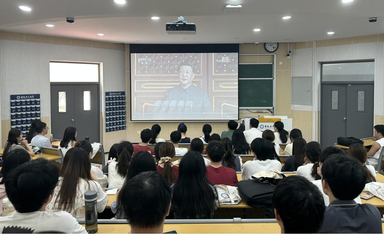 9月3日上午,纪念中国人民抗日战争暨世界反法西斯战争胜利80周年大会在北京天安门广场隆重举行。人工智能学院组织28位教师与160名学生代表,在耕心楼101、崇智楼A103教室集中收看大会直播实况,共同回望历史荣光,感悟时代使命。