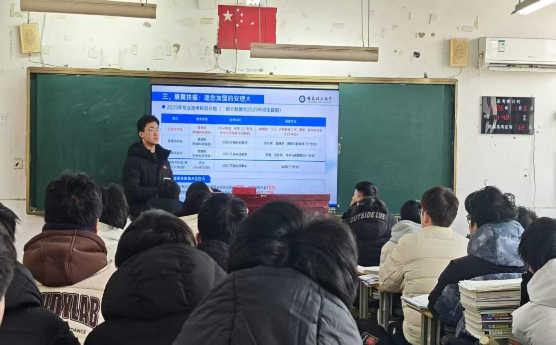 学子们化身“安理代言人”,重返高中母校,通过播放宣传片、分享成长故事、解读招生政策等发方式,讲述“安理故事”,传递“安理声音”。一场场真挚的分享,不仅在高中学子心中埋下了希望的种子,更在薪火相传中深化了归属感与使命感。